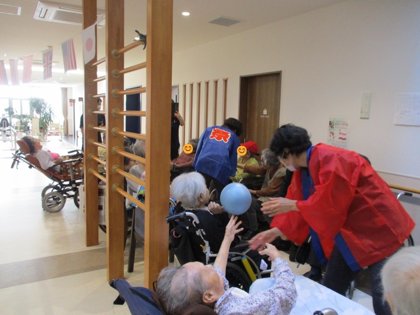 普段居室で過ごされる方も集まっていただいたので、運動会の雰囲気を皆さんで味わえたと思います。