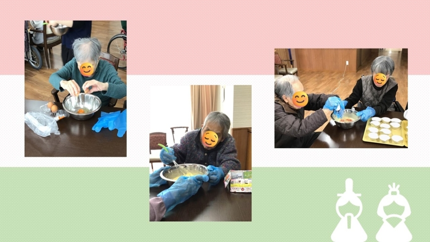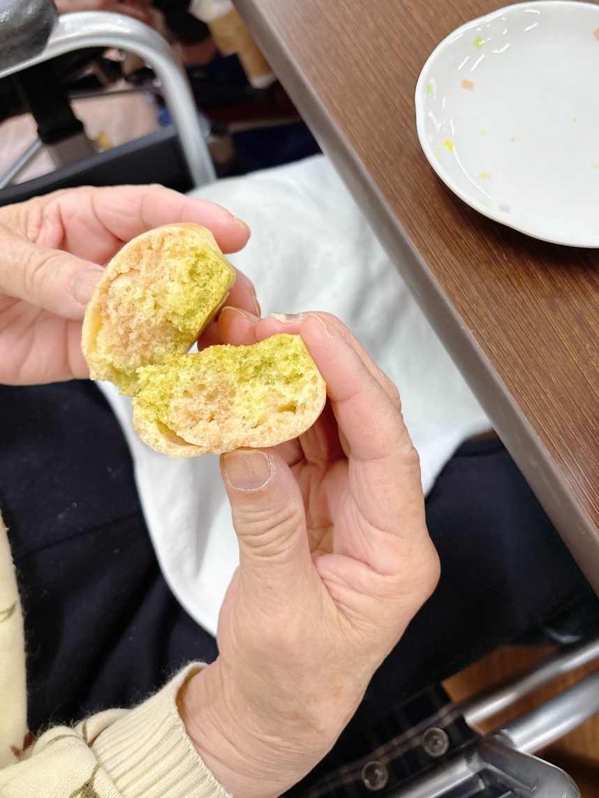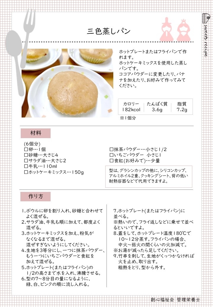 3/3を過ぎてはしまいましたが、三色蒸しパンです。それぞれの色に意味があるそうです。