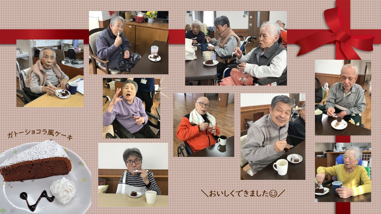 【くらしき日和平田】バレンタインおやつ作り 2026.02.17 毎年恒例のバレンタインおやつ作り♥ 今年も炊飯器でガトーショコラ風ケーキを焼きました! 調理作業は利用者様にもご協力いただきました。 混ぜるだけなので簡単です。 みなさまペロッと召し上がられ、好評でした** また来年も作りましょう☺ Cookpadにて掲載しています。今回はレシピのココアパウダーを大さじ1.5に増やし、しっとりほろっとしたケーキにしました。 https://cookpad.com/jp/recipes/24502792