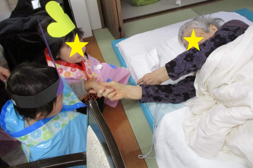 一緒に「うれしいひなまつり」を歌ったり、握手やタッチをしてもらったりと、あたたかい交流の時間を過ごしました。