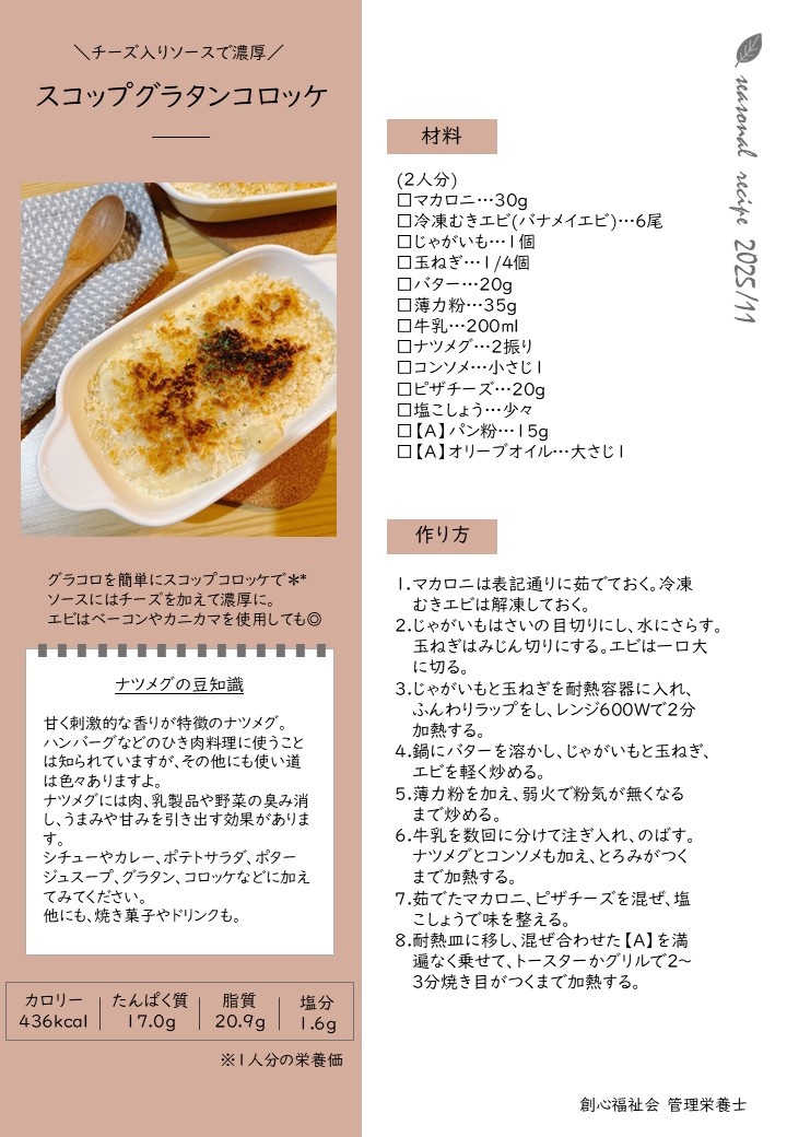 こんにちは。施設管理栄養士です。11月になると突然、冬が来たかのような寒さになりました。今年は冬の嵐になりやすく、昨年に比べて寒くなる可能性もあります。