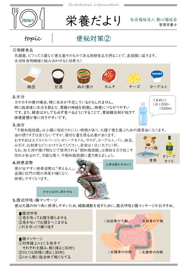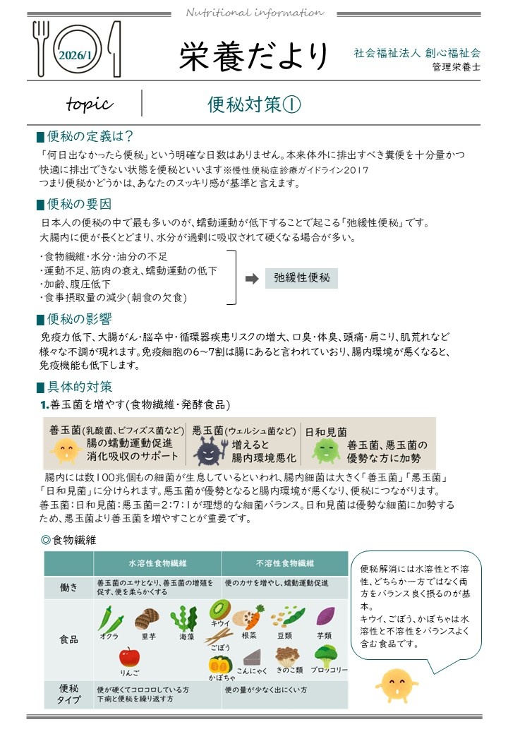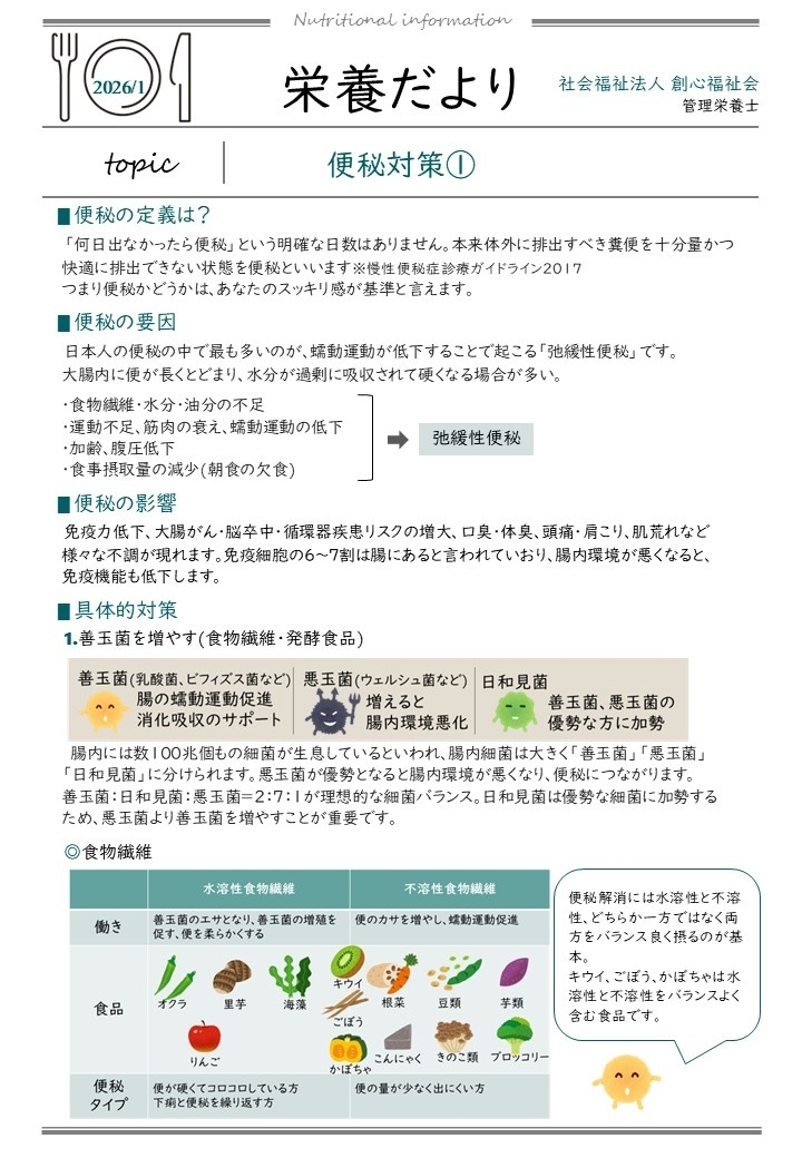 下剤や浣腸に頼ってしまいますが、食生活を見直して、少しでも取り入れていただけたら幸いです。