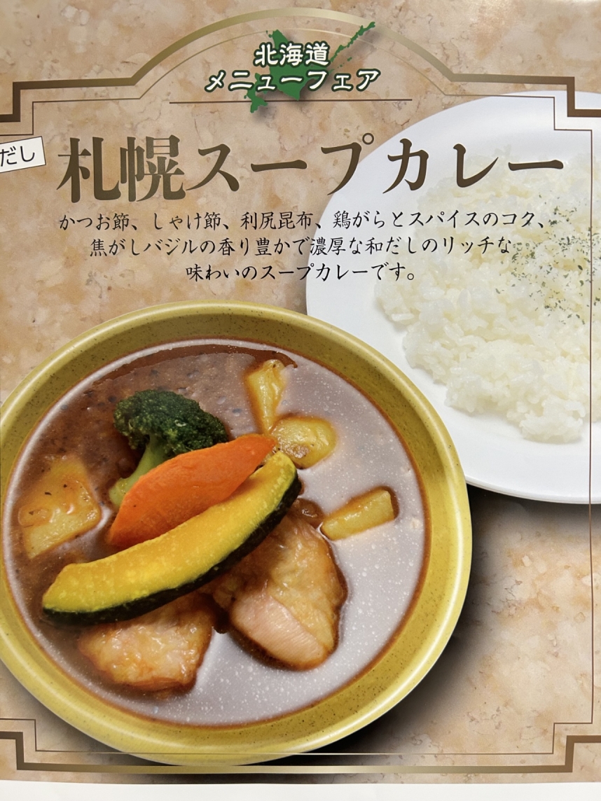 スープカレーはかつお節、しゃけ節、利尻昆布、鶏ガラとスパイスのコク、焦がしバジルの香り豊かで濃厚な和だしのリッチな味わいのスープです。